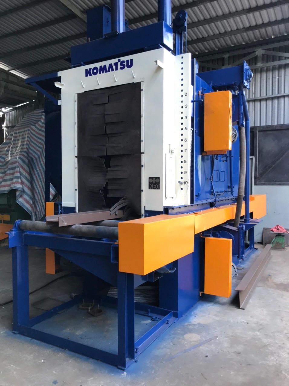 Thiết bị có thể làm sạch đi chỗ gỉ, quy mô gỉ, xỉ hàn trên bề mặt làm việc, cũng như ứng suất hàn, để loại bỏ căng thẳng và cải thiện chất lượng sơn mài bề mặt và chống thấm của kết cấu thép và thép.